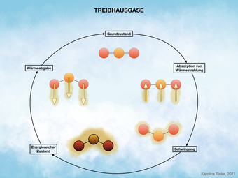 Das Bild verdeutlicht das Thema Treibhausgase. Bild-Variante: farbig; teilweise beschriftet. Es gelten die Nutzungsbedingungen der Mediothek und Pixiothek.