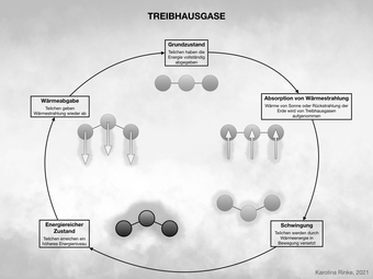 Das Bild verdeutlicht das Thema Treibhausgase. Bild-Variante: s/w; beschriftet. Es gelten die Nutzungsbedingungen der Mediothek und Pixiothek.