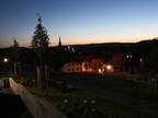 Motiv eines Stadtrundganges durch Pößneck (Ostthüringen) bei Nacht. Abgebildet ist der Blick über den Oberen Graben zum Pulverturm. Es gelten die Nutzungsbedingungen der Mediothek und Pixiothek.