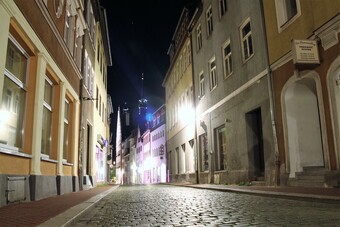 Motiv eines Stadtrundganges durch Pößneck (Ostthüringen) bei Nacht. Es gelten die Nutzungsbedingungen der Mediothek und Pixiothek.