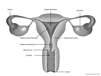 Das Bild gehört zur Serie "Organe des Menschen". Das Bild verdeutlicht den Aufbau der menschlichen Gebärmutter. Bild-Variante: s/w; beschriftet. Es gelten die Nutzungsbedingungen der Mediothek und Pixiothek.