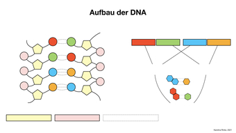 Das Bild verdeutlicht den Aufbau der DNA. Bild-Variante: farbig; unbeschriftet; Variante 1. Es gelten die Nutzungsbedingungen der Mediothek und Pixiothek.
