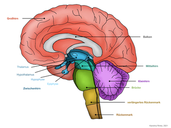 Das Bild gehört zur Serie "Organe des Menschen". Das Bild verdeutlicht den Aufbau des menschlichen Gehirns. Bild-Variante: farbig; teilbeschriftet. Es gelten die Nutzungsbedingungen der Mediothek und Pixiothek.
