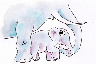 Das Bild gehört zur Serie "Witzige Fakten über Tiere". Es zeigt zwei gezeichnete Elefanten. Der ursprüngliche Begleittext aus dem Projekt der Urheberin lautet so: "Nuckelnde Babyelefanten. Kleine Elefanten lutschen gerne an ihrem Rüssel, so wie es menschliche Babys mit ihrem Daumen machen."
