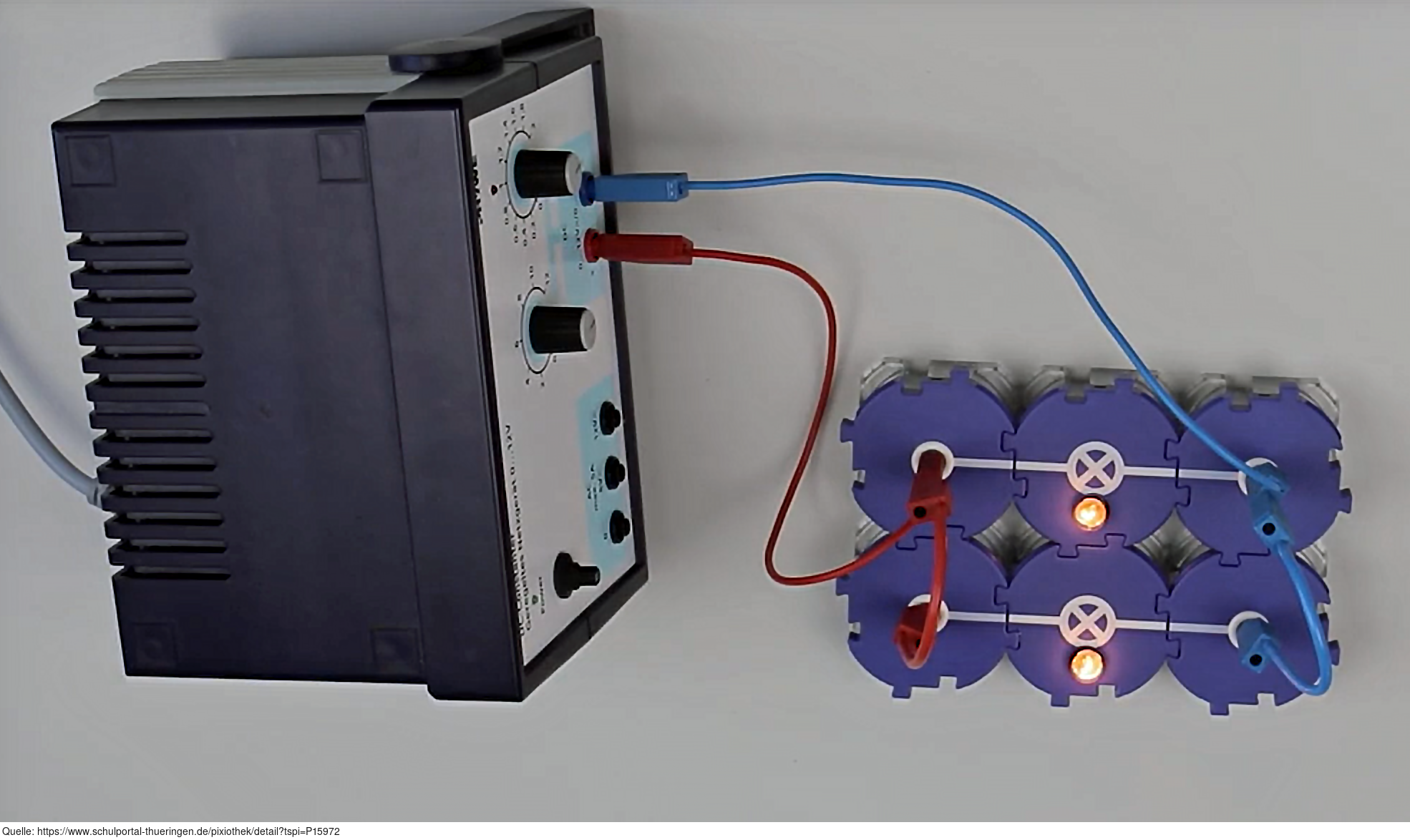 Das Bild gehört zur Serie "Elektrische Schaltungen". Es zeigt den Aufbau einer Parallelschaltung mit Spannungsquelle, Schalter und zwei Verbrauchern (Glühlampe). Der teilweise bearbeitete Screenshot stammt aus einem Video von Ecole Science, welches ebenfalls hier in der Pixiothek abrufbar ist (siehe Auswahl verwandter Medien). Das Bild ist unter CC0 lizenziert und kann somit frei verwendet werden.