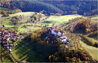 Das Bild gehört zur Serie „Luftbilder Leuchtenburg“. Es zeigt die Leuchtenburg bei Seitenroda, aufgenommen im Oktober 2018.