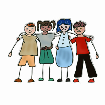 Das Bild zeigt vier Freunde, die sich treffen bzw. umarmen.. Das Bild ist unter CC0 lizenziert und kann somit frei verwendet werden.