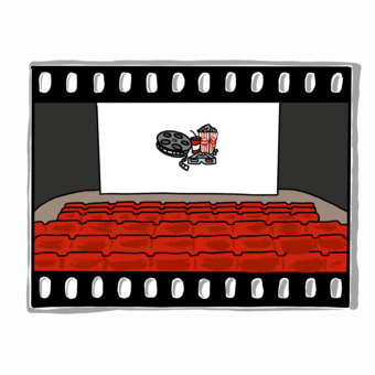 Das Bild zeigt einen gezeichneten Kinosaal mit Leinwand. Das Bild ist unter CC0 lizenziert und kann somit frei verwendet werden.