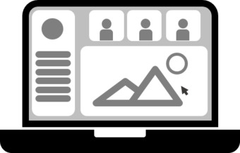 Das Bild zeigt eine symbolische Darstellung eines Notebooks bei einer hybriden Veranstaltung. Die Grafik gehört zur Serie „Mobiles Setup für hybride Veranstaltungen“. Es gelten die Nutzungsbedingungen der Mediothek und Pixiothek.