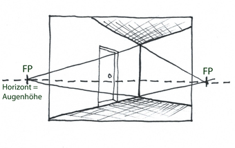 Das Bild gehört zur Serie "Projektionsarten". Es zeigt die Perspektive mit zwei Fluchtpunkten am Beispiel eines Innenraumes. Es gelten die Nutzungsbedingungen der Mediothek und Pixiothek.