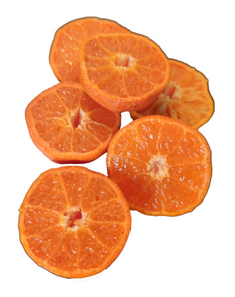 Das Bild gehört zur Serie "Obst". Zu sehen sind aufgeschnittene Mandarinen. Es gelten die Nutzungsbedingungen der Mediothek und Pixiothek.