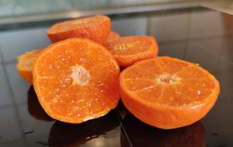 Das Bild gehört zur Serie "Obst". Zu sehen sind aufgeschnittene Mandarinen. Es gelten die Nutzungsbedingungen der Mediothek und Pixiothek.