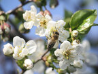 Gehörnte Mauerbiene auf einer Apfelblüte