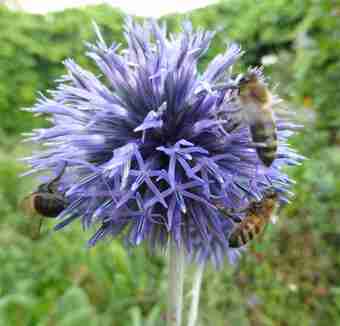 Honigbienen auf der Blüte einer Kugeldistel