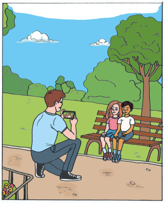 Vater möchte Kinder fotografieren