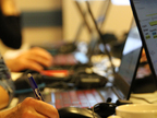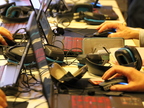 Das Bild ist Teil der Serie „Veranstaltungen“. Es zeigt einen Blick in den Vortragssaal und im Eingangsbereich einen Infobereich mit 2 QR-Codes. Es gelten die Nutzungsbedingungen der Mediothek und Pixiothek.