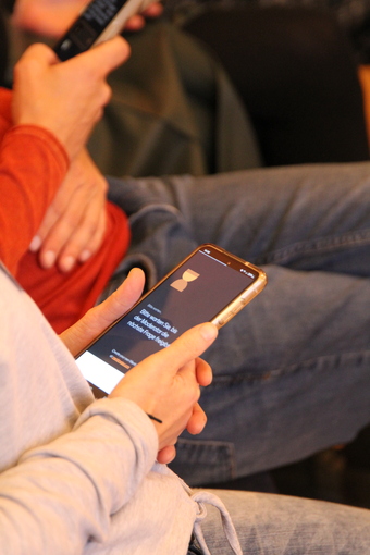 Das Bild ist Teil der Serie „Veranstaltungen“. Es zeigt Teilnehmer mit mobilen Endgeräten bei einer Umfrage. Es gelten die Nutzungsbedingungen der Mediothek und Pixiothek.