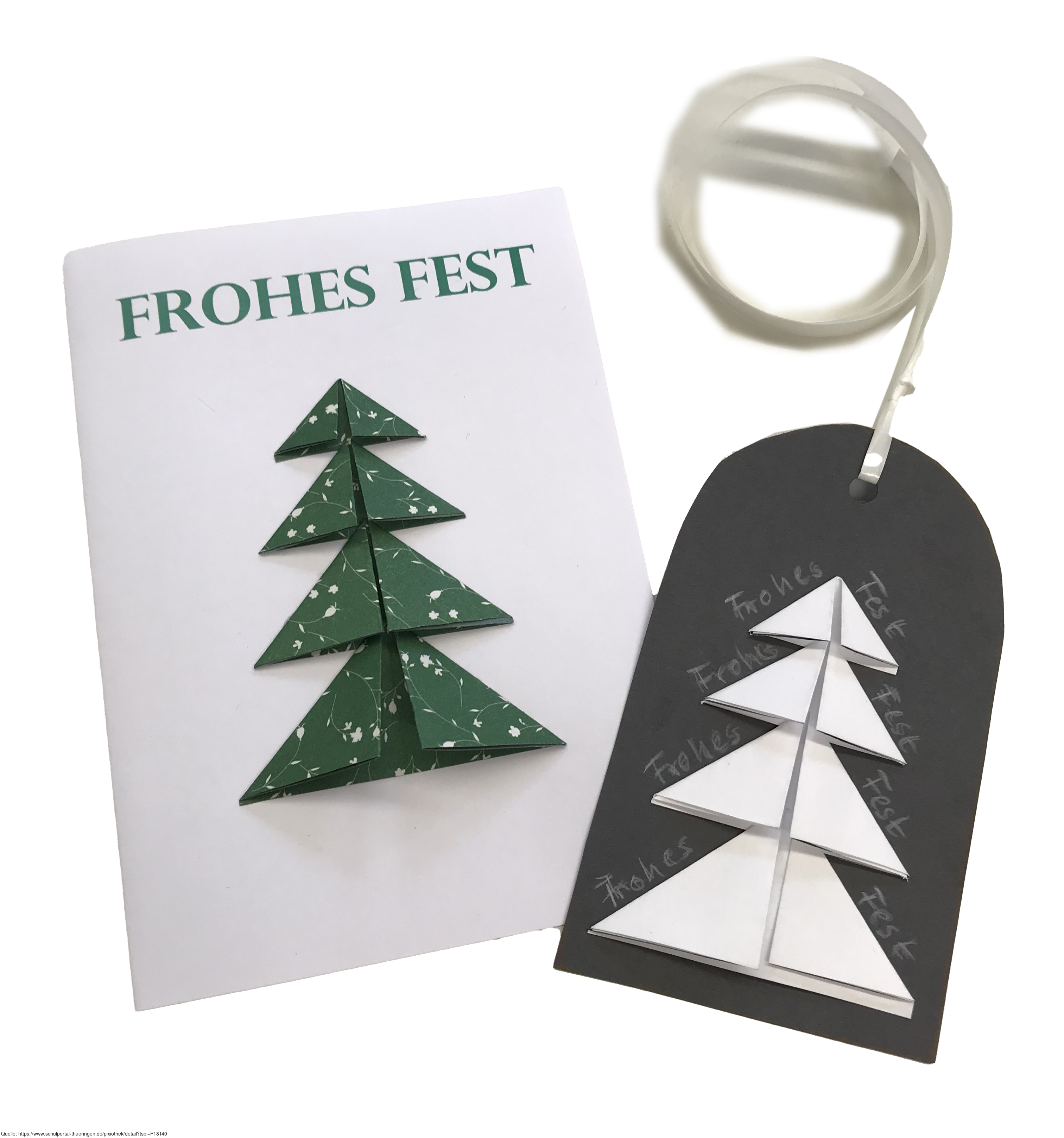 Das Bild ist Teil der Serie „Weihnacht“. Es zeigt eine Karte mit gebasteltem Faltweihnachtsbaum. Es gelten die Nutzungsbedingungen der Mediothek und Pixiothek.