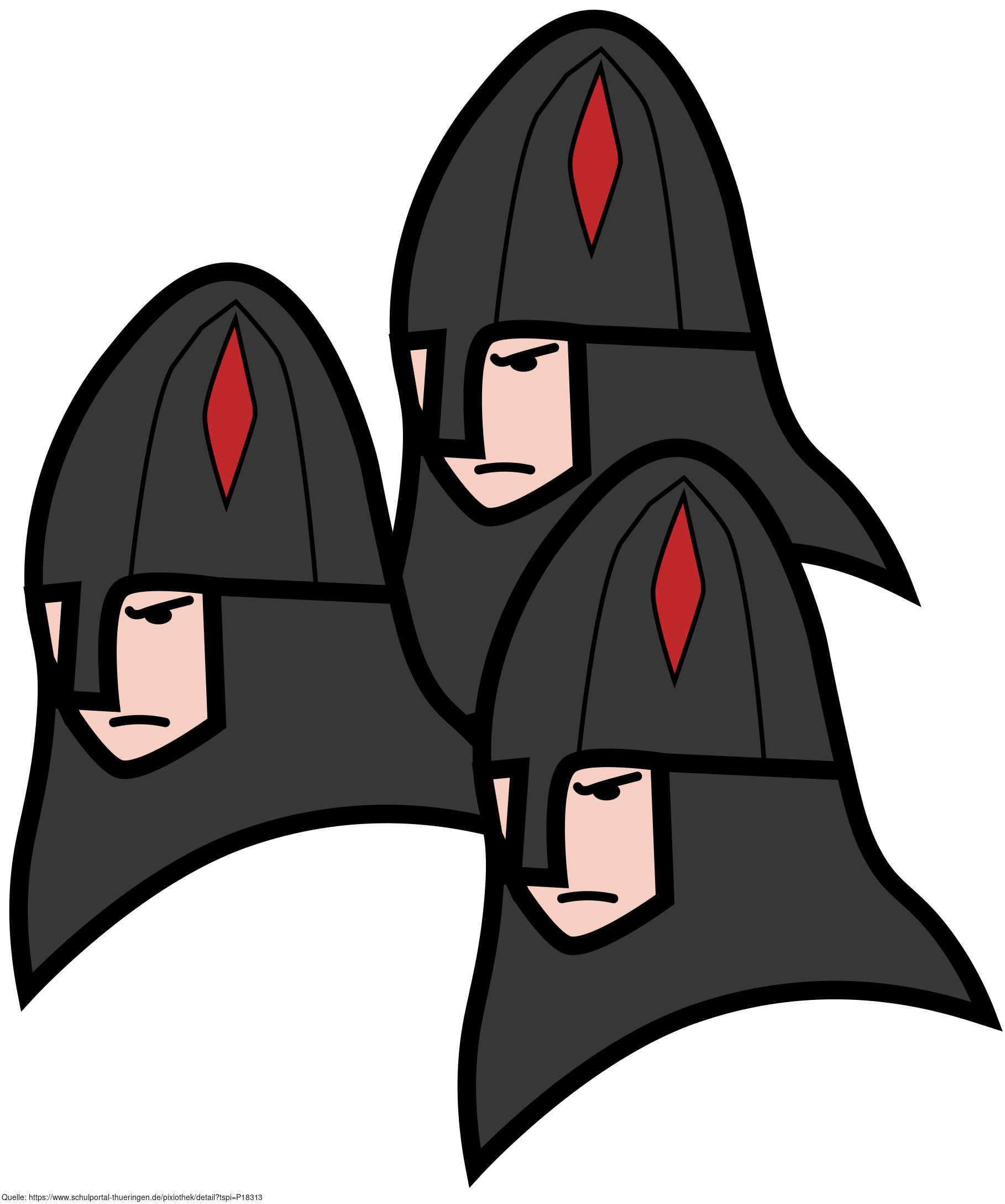 Das Bild zeigt drei gezeichnete Ritter, die böse blicken. Es stammt aus dem Projekt "Didactica Bavaria Bohemia" - Materialpakete daraus siehe "Verwandte Medien (Auswahl)". Das Bild ist unter CC0 lizenziert und kann somit frei verwendet werden.