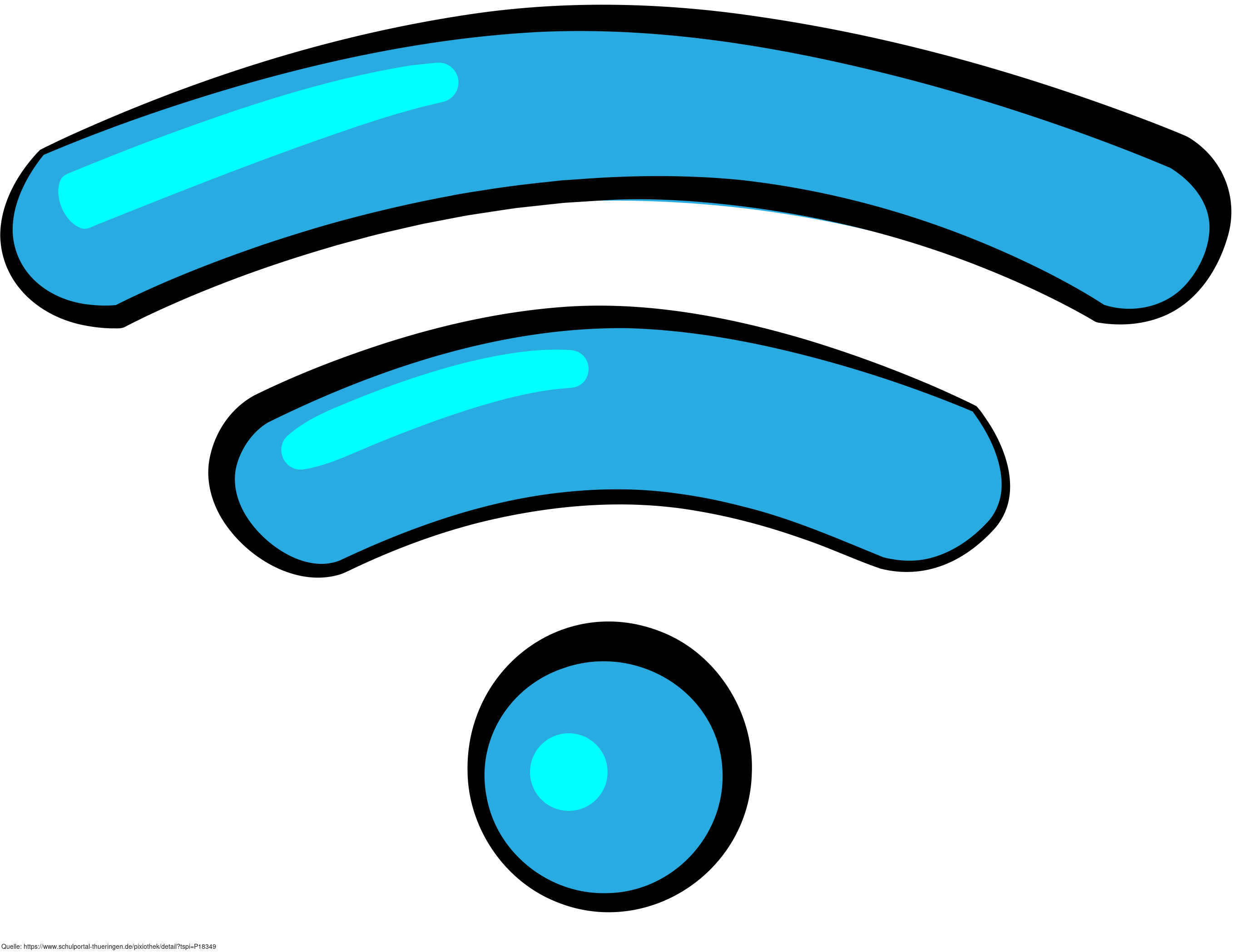 Das Bild zeigt ein gezeichnetes Symbol für WLAN. Es stammt aus dem Projekt "Didactica Bavaria Bohemia" - Materialpakete daraus siehe "Verwandte Medien (Auswahl)". Das Bild ist unter CC0 lizenziert und kann somit frei verwendet werden.