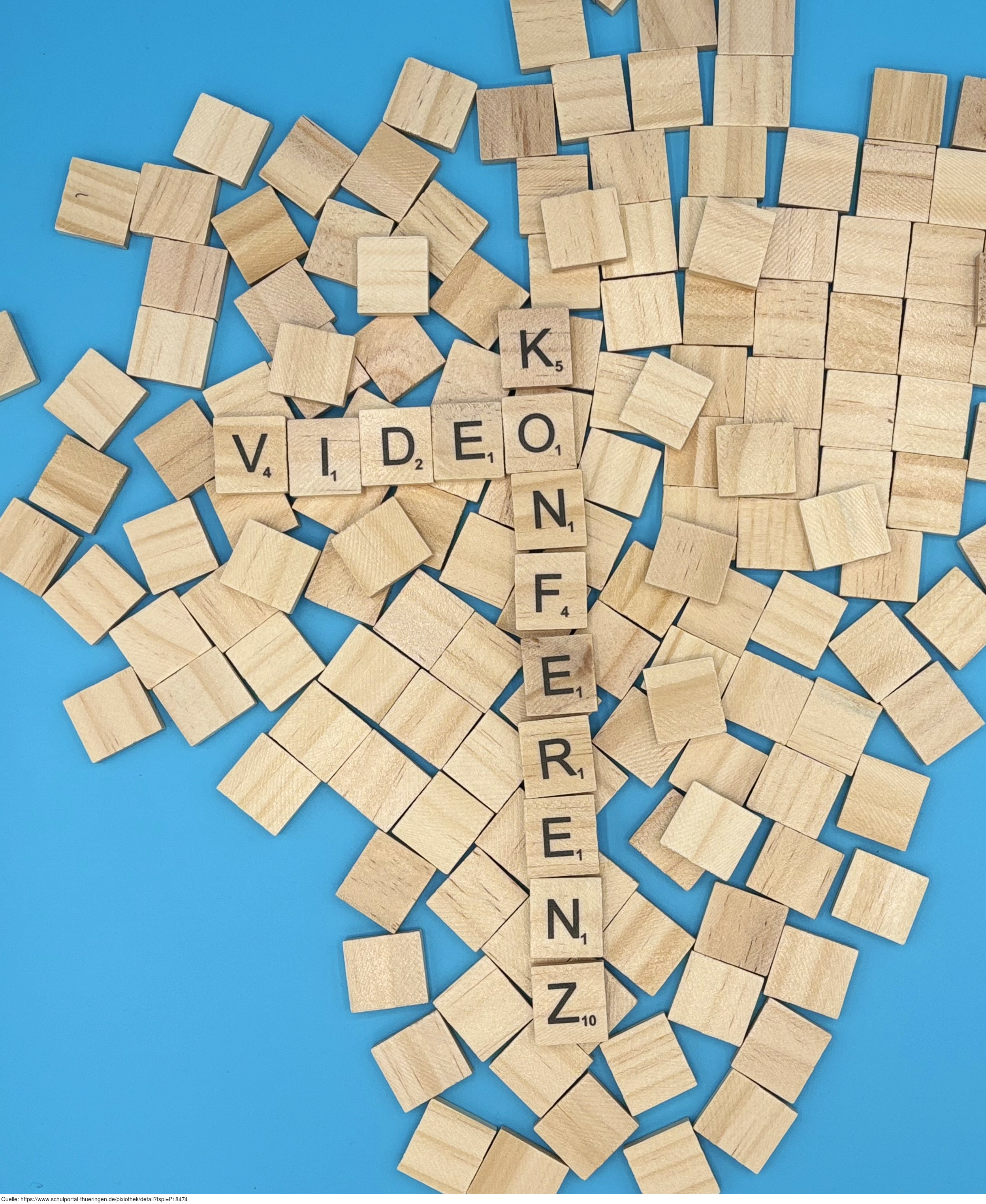 Aus Buchstaben wurde das Wort "Videokonferenz" gelegt. Es gelten die Nutzungsbedingungen der Mediothek und Pixiothek.