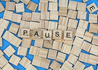 Aus Buchstaben wurde das Wort "Pause" gelegt. Es gelten die Nutzungsbedingungen der Mediothek und Pixiothek.