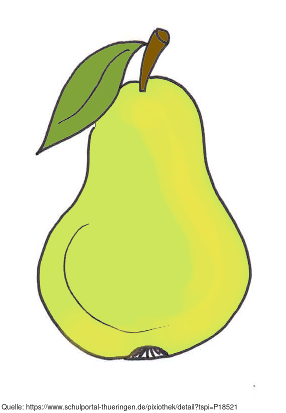 Das Bild zeigt eine gezeichnete Birne (farbig). Es gehört zur Serie "Ernährungspyramide zum Basteln und Gestalten" und findet u.a. im gleichnamigen Lernobjekt unter https://www.schulportal-thueringen.de/web/guest/media/detail?tspi=18517 Verwendung. Es gelten die Nutzungsbedingungen der Mediothek und Pixiothek.