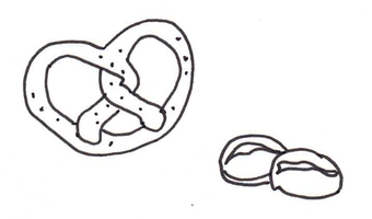Das Bild zeigt eine gezeichnete Brezel und zwei Brötchen (s/w). Es gehört zur Serie "Ernährungspyramide zum Basteln und Gestalten" und findet u.a. im gleichnamigen Lernobjekt unter https://www.schulportal-thueringen.de/web/guest/media/detail?tspi=18517 Verwendung. Es gelten die Nutzungsbedingungen der Mediothek und Pixiothek.