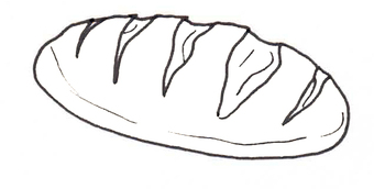 Das Bild zeigt ein gezeichnetes Brot (s/w). Es gehört zur Serie "Ernährungspyramide zum Basteln und Gestalten" und findet u.a. im gleichnamigen Lernobjekt unter https://www.schulportal-thueringen.de/web/guest/media/detail?tspi=18517 Verwendung. Es gelten die Nutzungsbedingungen der Mediothek und Pixiothek.