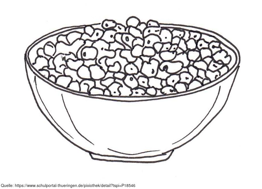 Das Bild zeigt eine gezeichnete Schale voller Körner (s/w). Es gehört zur Serie "Ernährungspyramide zum Basteln und Gestalten" und findet u.a. im gleichnamigen Lernobjekt unter https://www.schulportal-thueringen.de/web/guest/media/detail?tspi=18517 Verwendung. Es gelten die Nutzungsbedingungen der Mediothek und Pixiothek.