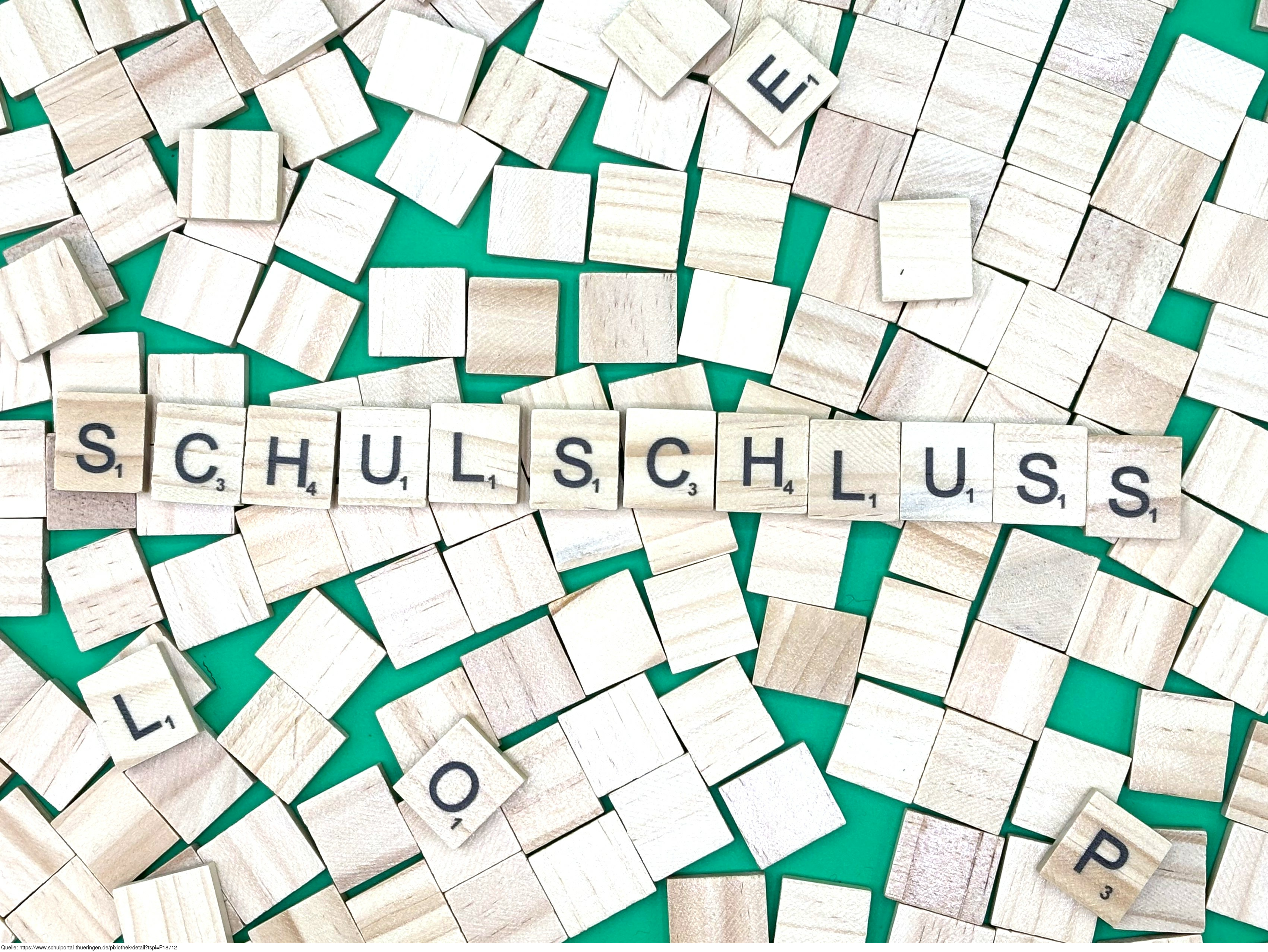 Aus Buchstaben wurde der Begriff „Schulschluss" gelegt. Es gelten die Nutzungsbedingungen der Mediothek und Pixiothek.