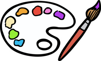 Die Zeichnung zeigt eine Farbpalette mit Pinsel. Das Bild ist unter CC0 lizenziert und kann somit frei verwendet werden. Es ist neben weiteren Bildern auch hier zu finden: https://cocomaterial.com