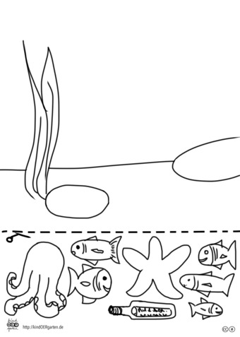 Das Bild zeigt das Motiv einer Unterwasserwelt (s/w) und kann als Schnipselbildvorlage für Kinder im Kindergarten bzw. Elementarbereich dienen. Das Bild ist unter CC0 lizenziert und kann somit frei verwendet werden. Es ist neben weiteren Bildern auch hier zu finden: https://kindoergarten.wordpress.com/