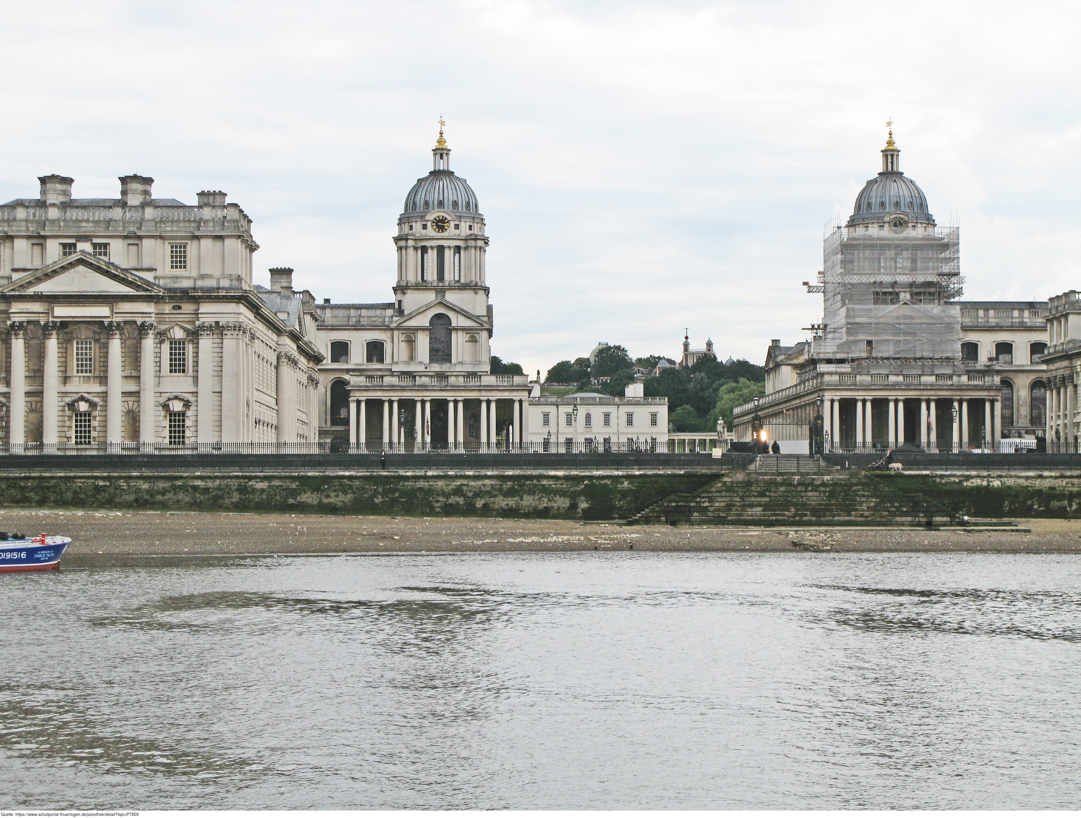 Die Abbildung zeigt den Thames Tunnel, dt. Themse-Tunnel. Er unterquert die Themse in London und verbindet die Stadtteile Rotherhithe und Wapping miteinander. Der Tunnel ist etwa 10 Meter breit und 366 Meter lang. Er wurde 1843 fertiggestellt und war der weltweit erste Tunnel unter einem Fließgewässer.