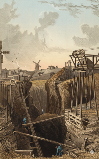 Die Abbildung zeigt die Eisenminen zu Dannemora. Die Eisenminen von Dannemora in Schweden waren über Jahrhunderte hinweg Schwedens wichtigstes Eisenerzbergwerk, bekannt für die Produktion hochreinen Eisenerzes, das für seine Qualität berühmt war und unter anderem in der Wallonischen Schmiedekunst verwendet wurde, bis das Bergwerk 1992 geschlossen wurde. Die Minen wurden bereits im 13. Jahrhundert erwähnt.