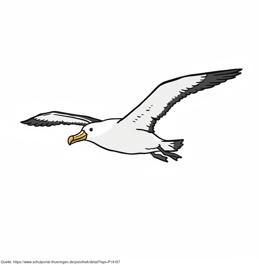 Das Bild zeigt einen gezeichneten Albatros. Das Bild wurde mittels einer KI (Gemini) erstellt und ist unter CC0 lizenziert. Weitere Bilder aus Herrn Emrich-Försters Bild-Archiv findet man hier: https://pix.foerster.rocks/