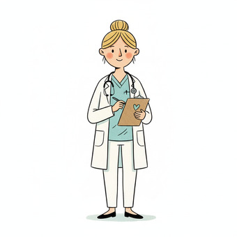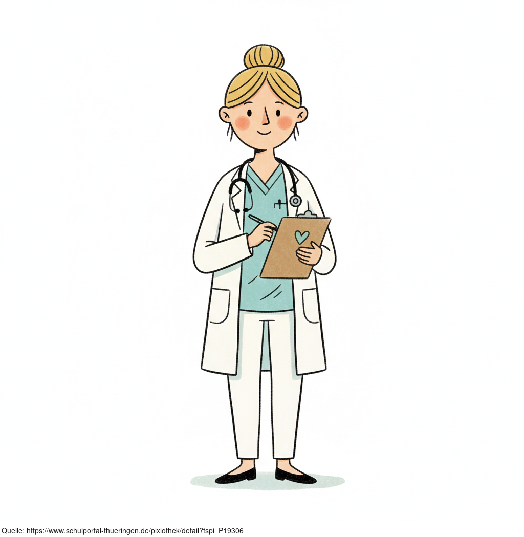 Das Bild zeigt eine gezeichnete Ärztin mit Stethoskop. Das Bild wurde mittels einer KI (Gemini) erstellt und ist unter CC0 lizenziert. Weitere Bilder aus Herrn Emrich-Försters Bild-Archiv findet man hier: https://pix.foerster.rocks​​​​​/