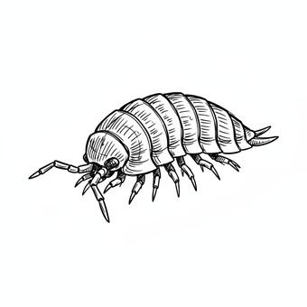 Das Bild zeigt eine gezeichnete Assel. Das Bild wurde mittels einer KI (Gemini) erstellt und ist unter CC0 lizenziert. Weitere Bilder aus Herrn Emrich-Försters Bild-Archiv findet man hier: https://pix.foerster.rocks/