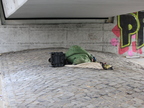 Obdachloser unter einer Brücke