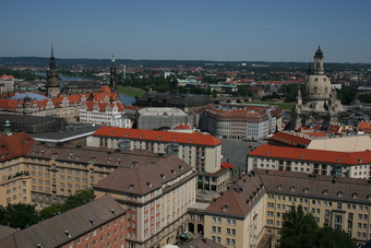 Abgebildet ist ein Blick auf die Frauenkirche und die Umgebung.