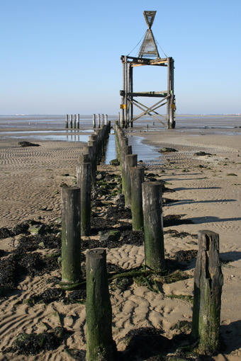 Abgebildet ist die Strandbake mit Buhnen (Strandbefestigung und Signal).