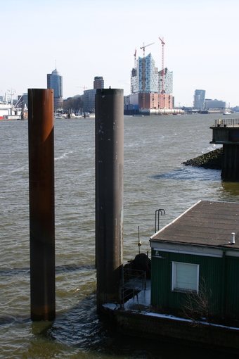 Das Foto gehört zur Serie "Hansestadt Hamburg". Es zeigt den Blick auf die Elbe und die Elbphilharmonie (hier noch im Bau). Es gelten die Nutzungsbedingungen der Mediothek und Pixiothek.