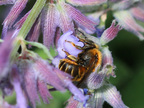 Gehörnte Mauerbiene auf einer Apfelblüte