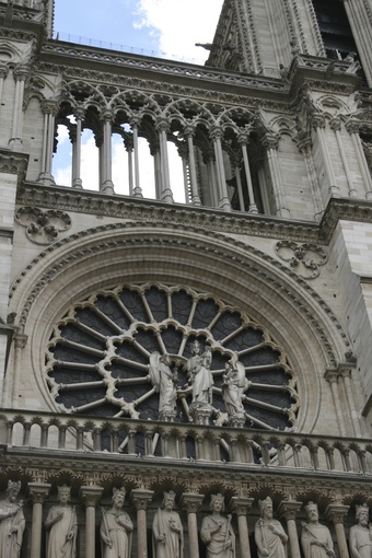 Paris: Außenansicht Rosettenfenster Notre-Dame