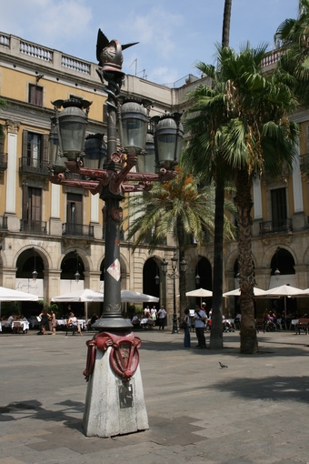 Barcelona: Straßenlaterne von Antoni Gaudí auf dem Plaça Reial