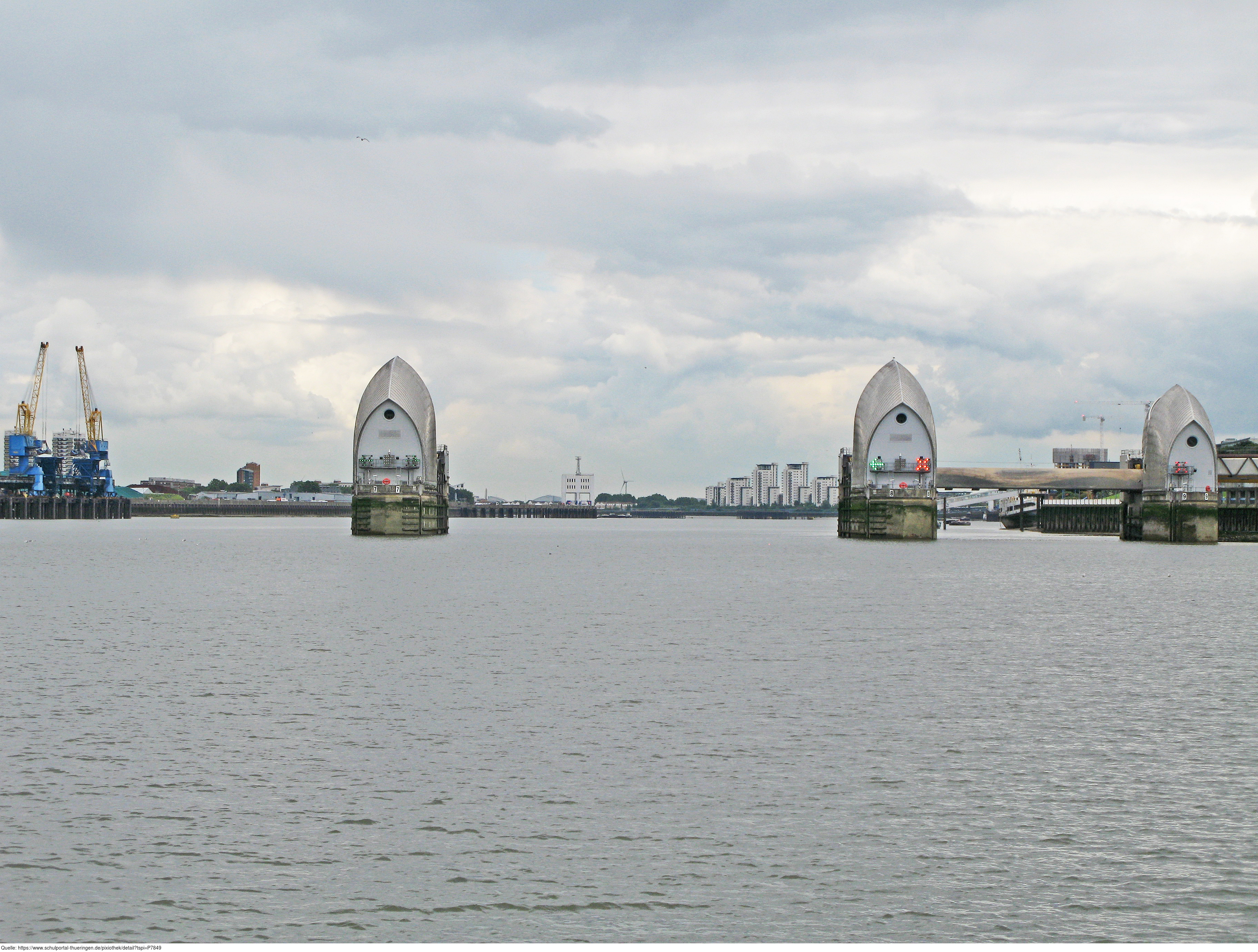 Das Foto gehört zur Serie London 2016. Es zeigt "The Thames Barrier", eines der größten Sturmflutsperrwerke der Welt. Es gelten die Nutzungsbedingungen der Mediothek und Pixiothek.