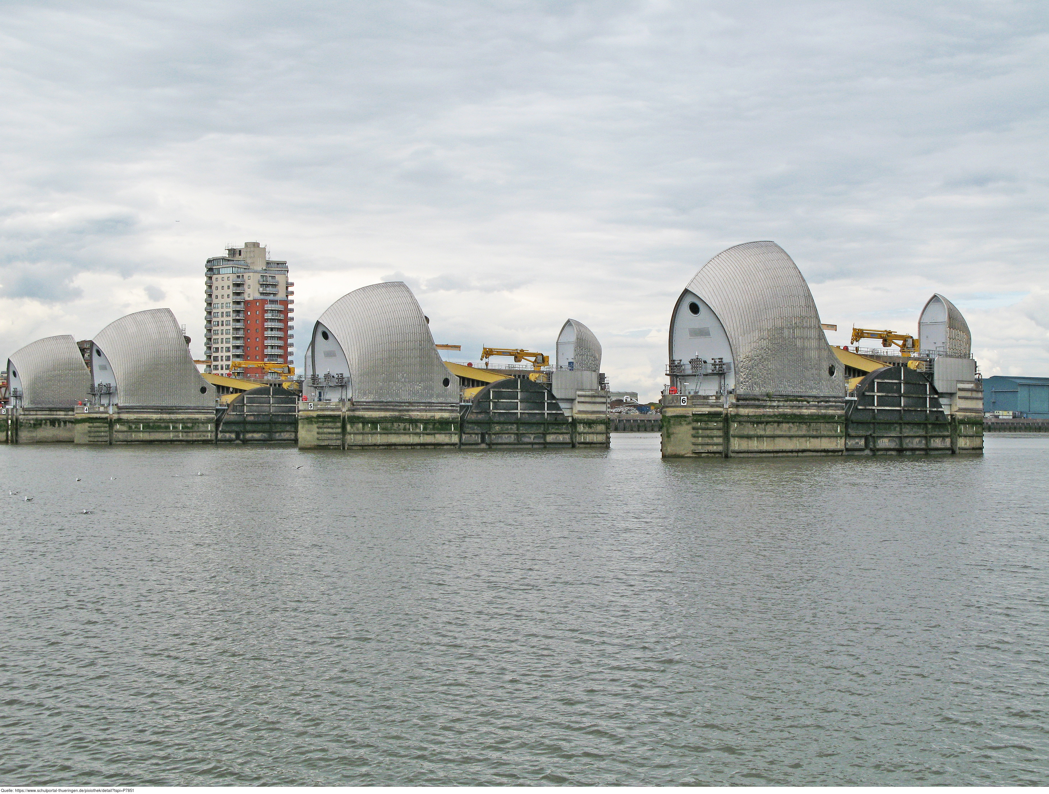 Das Foto gehört zur Serie London 2016. Es zeigt "The Thames Barrier", eines der größten Sturmflutsperrwerke der Welt. Es gelten die Nutzungsbedingungen der Mediothek und Pixiothek.