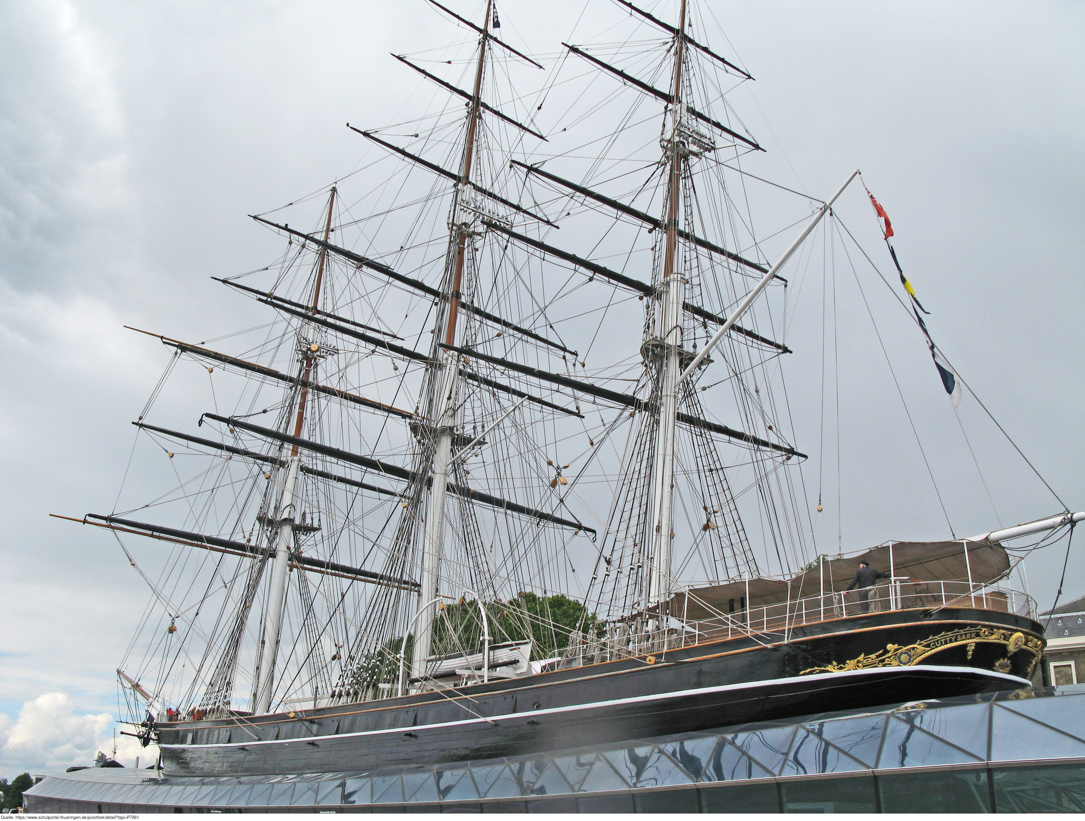 Das Foto gehört zur Serie London 2016. Es zeigt das historische Segelschiff Cutty Sark, den letzten britischen Teeklipper. Sie war im 19. Jahrhundert eines der schnellsten Segelschiffe ihrer Zeit. Heute liegt die Cutty Sark auf einem Trockendock neben dem Fährterminal "Greenwich Pier" und beherbergt ein Schifffahrtsmuseum. Es gelten die Nutzungsbedingungen der Mediothek und Pixiothek.