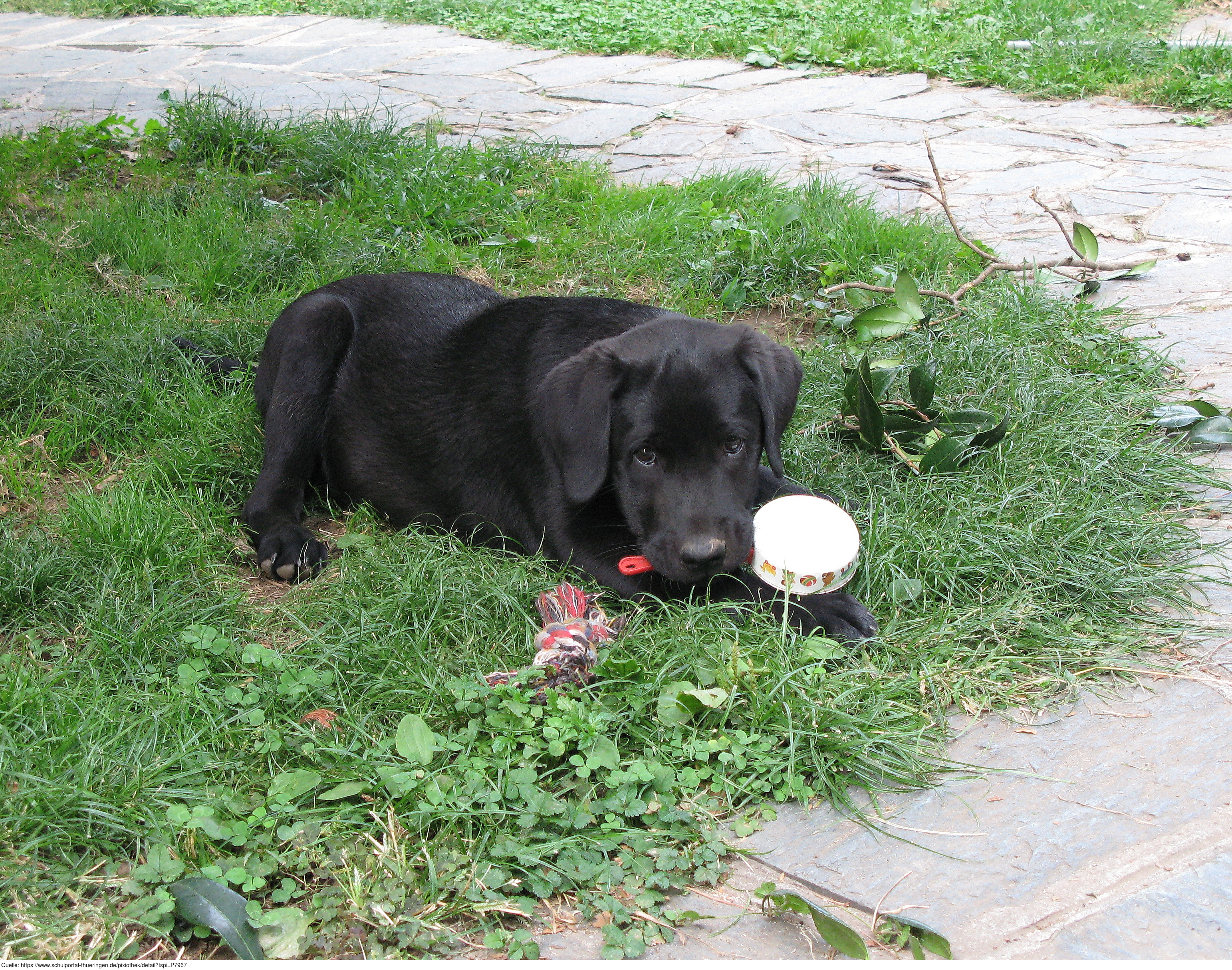 Das Foto hehört zur Serie Hunde. Es zeigt einen jungen schwarzen Labrador Retriever. Es gelten die Nutzungsbedingungen der Mediothek und Pixiothek.