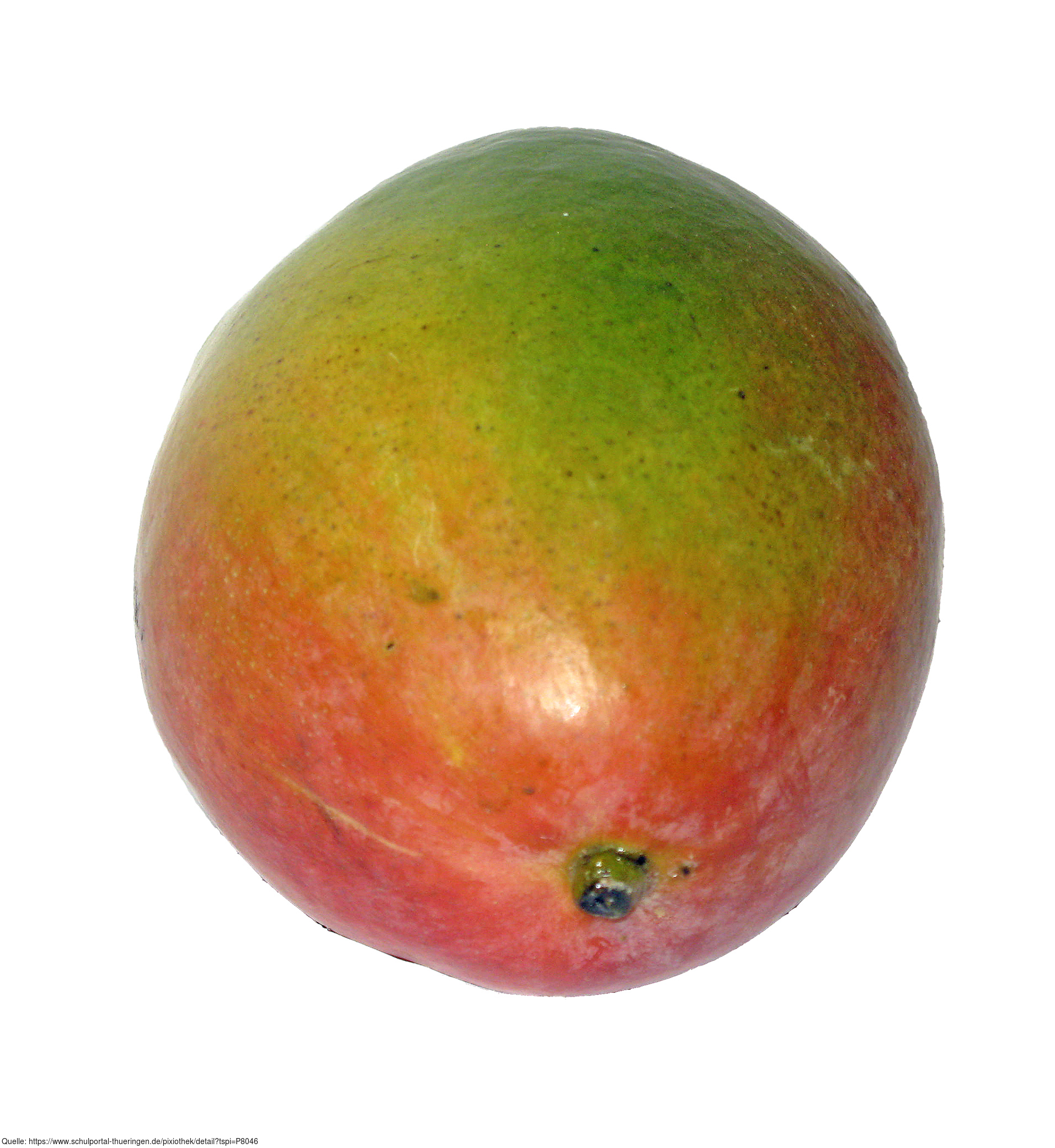 Das Foto gehört zur Serie Obst. Es zeigt eine Mango. Es gelten die Nutzungsbedingungen der Mediothek und Pixiothek.